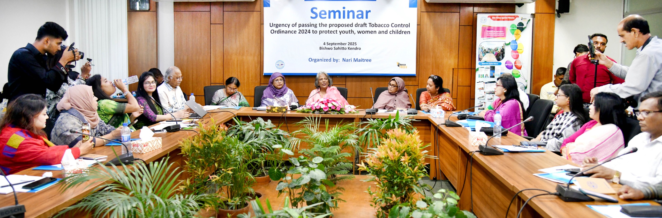 তিনি আজ বিকালে ঢাকায় বিশ্বসাহিত্য কেন্দ্রে নারী মৈত্রী কর্তৃক আয়োজিত ‘তরুণ-তরুণী, নারী ও শিশুর স্বাস্থ্য সুরক্ষায় প্রস্তাবিত তামাক নিয়ন্ত্রণ আইন শক্তিশালী করার গুরুত্ব’ শীর্ষক সেমিনারে প্রধান অতিথির বক্তব্যে এ কথা বলেন।