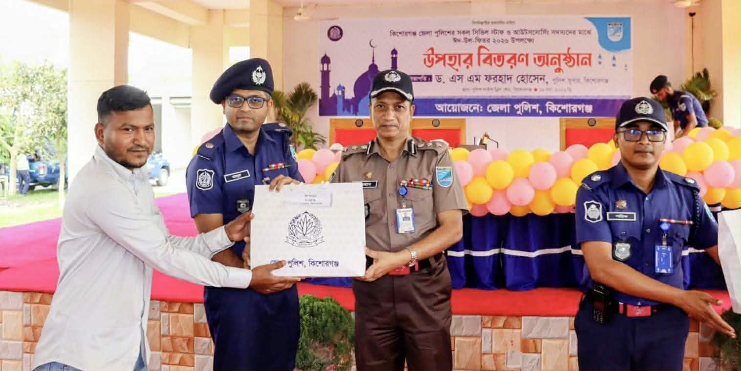কিশোরগঞ্জে সিভিল স্টাফ ও আউটসোর্সিং সদস্যদের ঈদ উপহার দিলেন পুলিশ সুপার